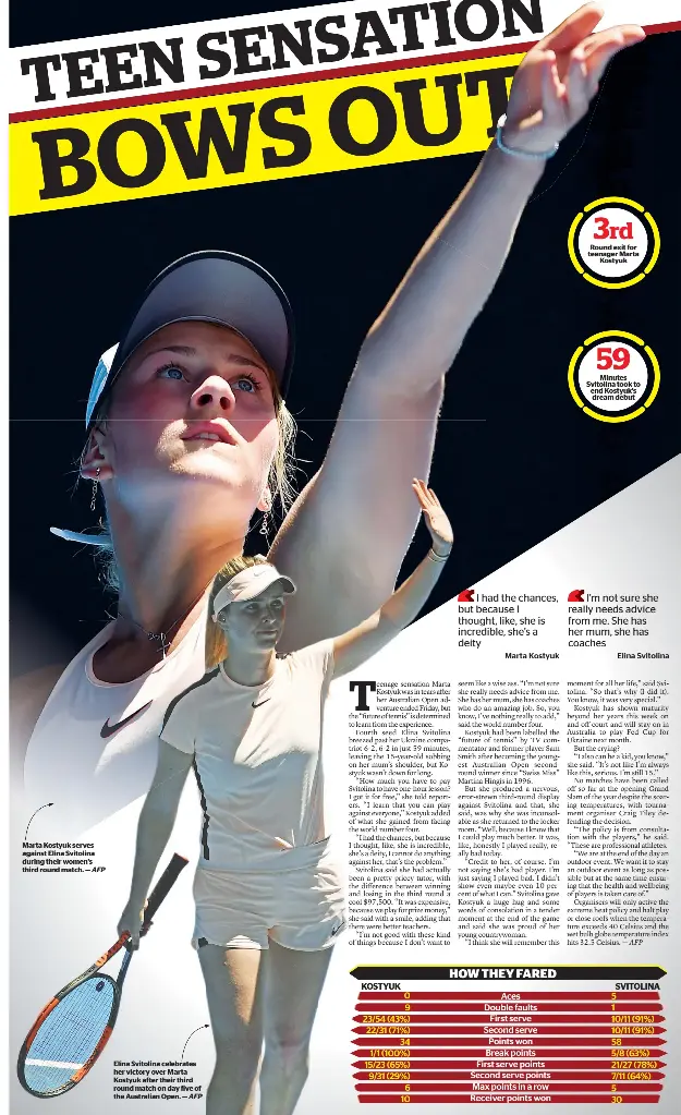 Marta kostyuk lost to elina svitolina in straight sets in their australian open 3rd round match.(reuters).